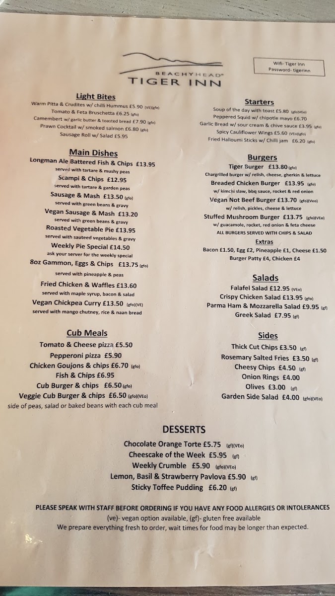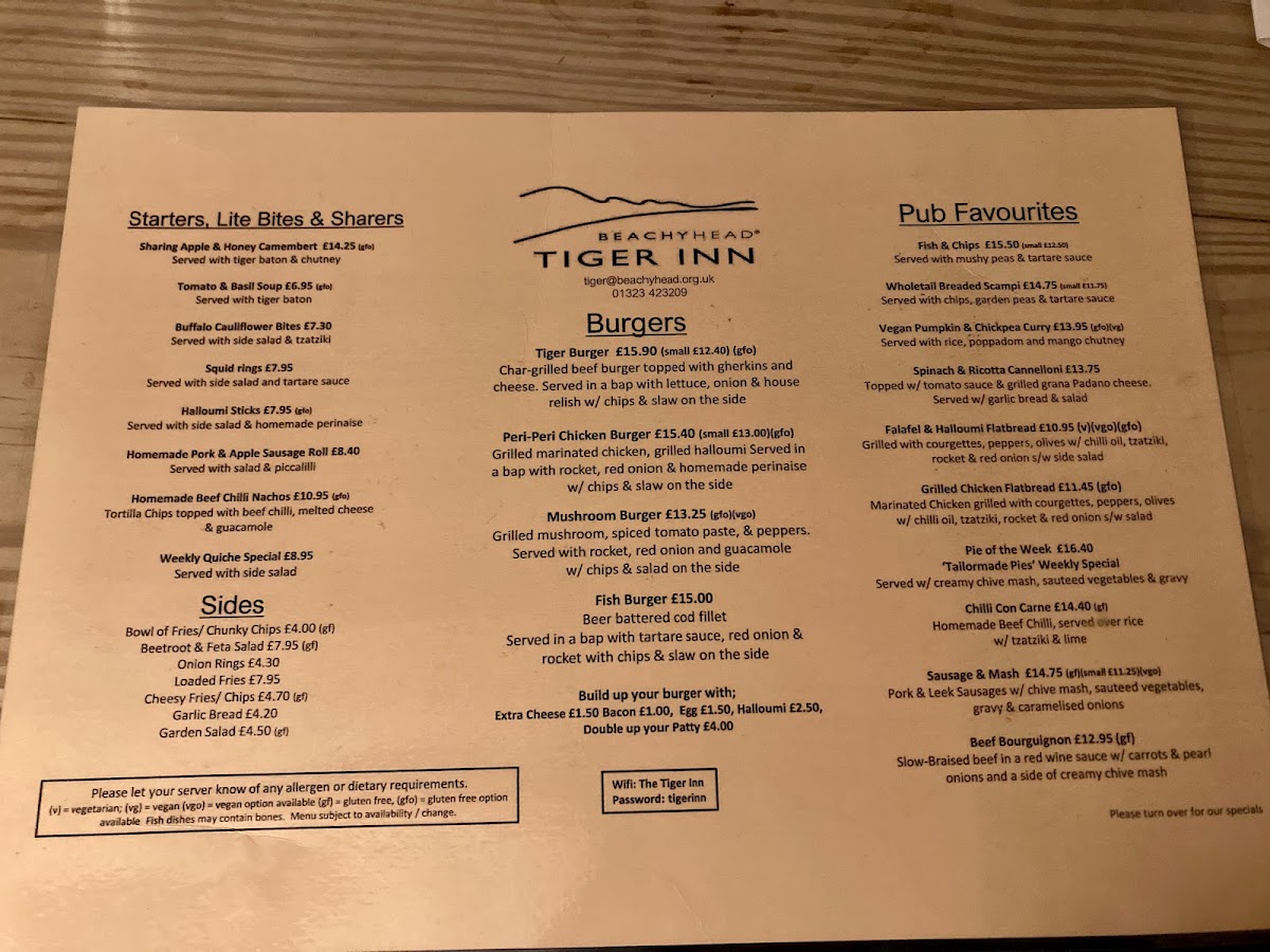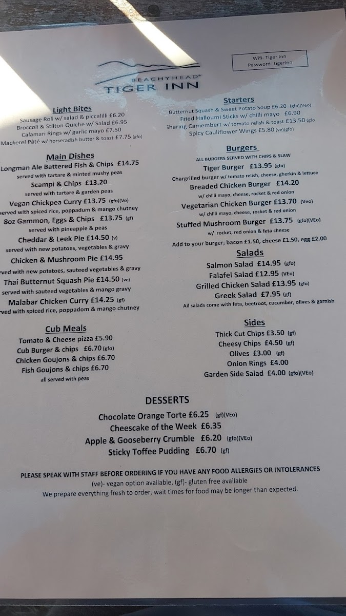 Welcome to Tiger Inn, nestled in the beautiful Green of East Dean, Eastbourne, where culinary delights meet a rustic charm. Our menu is a heartfelt tribute to classic British dishes, featuring the widely-loved Herb Breaded Fish & Chips and the indulgent Sussex Sausage & Mash, both designed to satisfy your comfort food cravings.